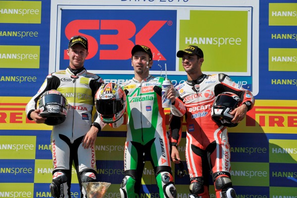 El romano y el español mantuvieron un bonito duelo que terminó con Biaggi en tercera posición al final de la sexta vuelta, al tiempo que Rea y Crutchlow se escapaban. El británico aguantó contra la Honda hasta el décimo giro, después tuvo que rendirse y dejar a Rea vencer en solitario. La 'tragedia' de Crutchlow se completó al ser rebasado también por Biaggi.