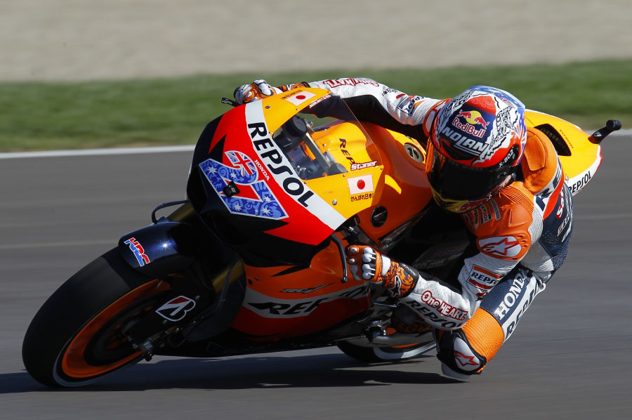 MotoGP ha tenido el dominio claro y absoluto de Casey Stoner durante el fin de semana. Este motivo ha hecho que Jorge Lorenzo, que todavía no ha bajado los brazos y quiere seguir peleando por el título mundial, salga muy fuerte desde los primeros momentos de la clasificatoria. Dani Pedrosa también ha estado peleando con los pilotos de cabeza para lograr la pole position, igual que ha hecho Ben Spies, Andrea Dovizioso o Simoncelli. Finalmente, la parrilla de la categoría reina verá como sale desde la pole position Casey Stoner, a quien seguirán Ben Spies y Jorge Lorenzo. El top 10 lo completan Pedrosa, Dovizioso, Edwards, Simoncelli, Hayden, Bautista y Barberá.