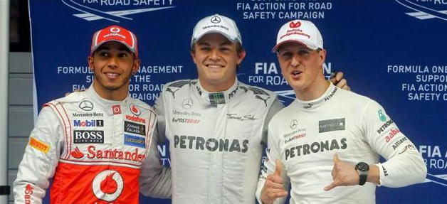 Lewis Hamilton, Nico Rosberg y Michael Schumacher/ lainformacion.com/ EFE